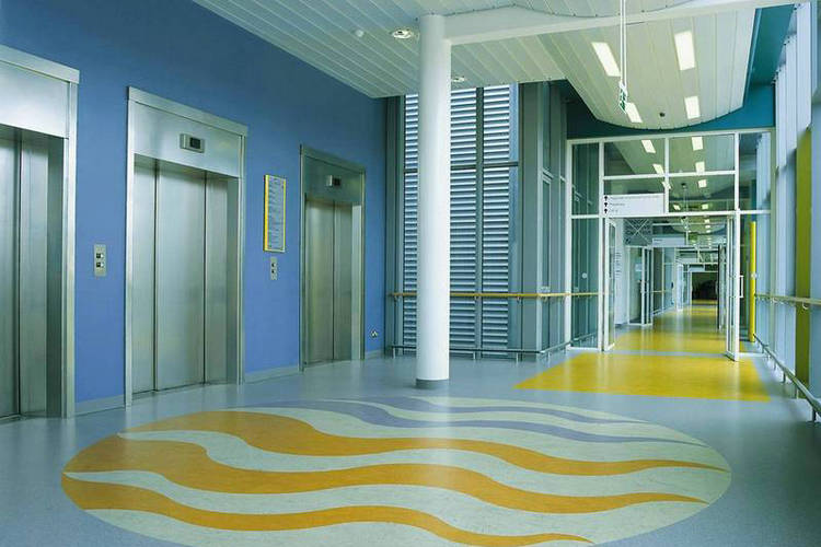 地板是構(gòu)建醫(yī)院環(huán)境中的一份子。PVC彈性地板色彩豐富,顆粒、斑點(diǎn)或是圖案的設(shè)計(jì)令色彩搭配層次分明。例如在兒童病房,PVC地坪巧妙的色彩搭配,無形中消除了兒童對(duì)醫(yī)院的抵觸心理,起到了“視覺治療”的作用。在國外醫(yī)院廣泛采用的PVC地板,PVC地板具備古典的陶瓷色澤、典雅的木質(zhì)圖案、自然色調(diào)的花崗巖等多種色彩和設(shè)計(jì)圖形。其采用的專利圓形邊緣設(shè)計(jì),既可在地面的邊沿、墻角使用,又適用于圓形地面,具有無限的發(fā)揮空間。同時(shí)具有卷材和便于鋪設(shè)的彈性塊材,其相對(duì)薄的厚度和優(yōu)秀的隔音與隔熱性能,能直接用于石材、陶瓷、木材等老式的地基面層上,更是醫(yī)院建設(shè)的不二之選。