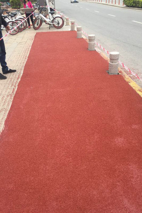 3.交通警示作用:不同顏色形成的彩色路面,顏色鮮艷明亮,可以根據(jù)需要采用防滑路面來標(biāo)記各種專用車道和標(biāo)識(shí);