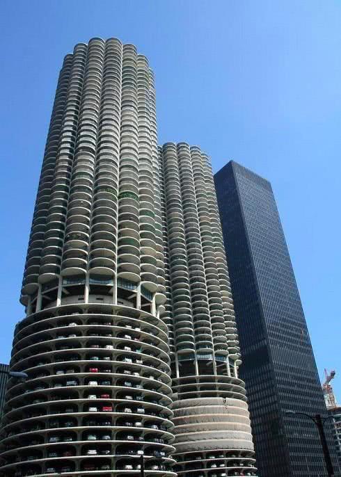 這其實是大眾德國的沃夫斯堡的停車場。兩幢圓柱形汽車塔高20層42米,每幢塔樓可以存放400輛大眾汽車。