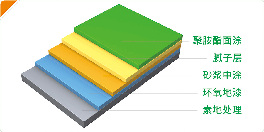 3.砂漿層:使用聚胺脂砂漿中涂加入石英砂,充分?jǐn)嚢韬蠓峙喂纹街攸c(diǎn)填補(bǔ)坑洞和缺陷