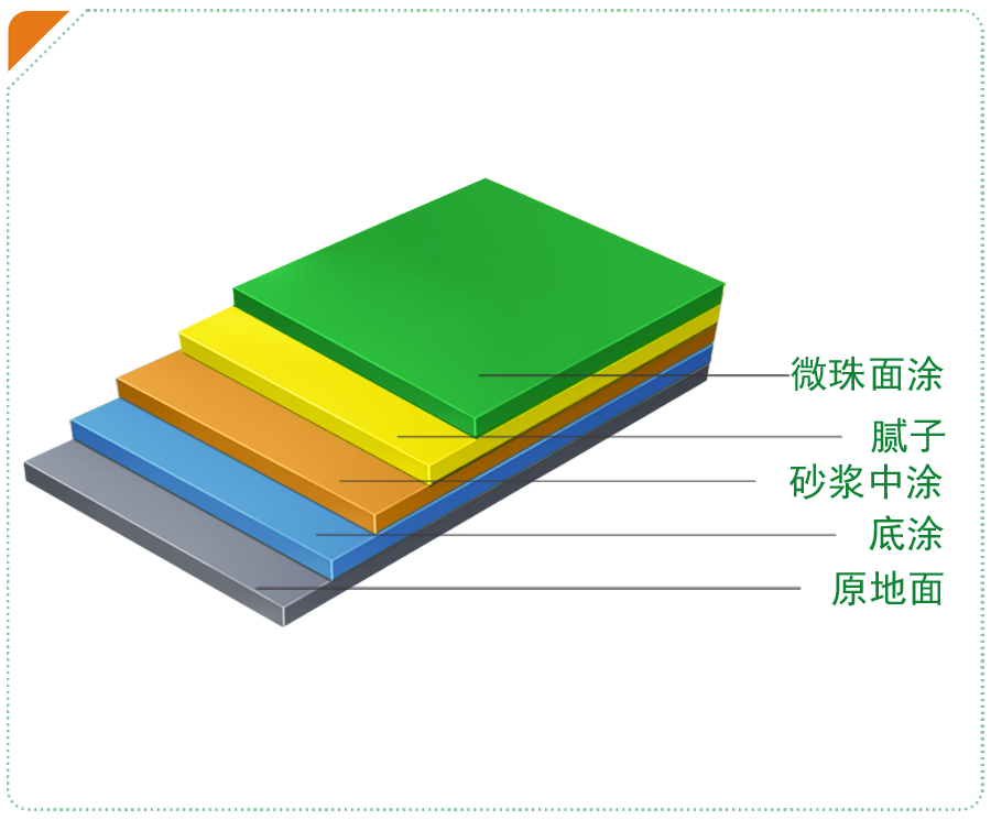 1.選用優質的液體環氧樹脂,高級活性釋劑和改性脂環胺類固化劑作為成膜物質,采用進口通用色漿配色,填充細料選用高純度剛玉粉,耐磨佳,抗刮傷性能好;填充骨料選用高精度石英砂、金剛砂、剛玉砂骨料,微珠顆粒均勻,機械強度高;